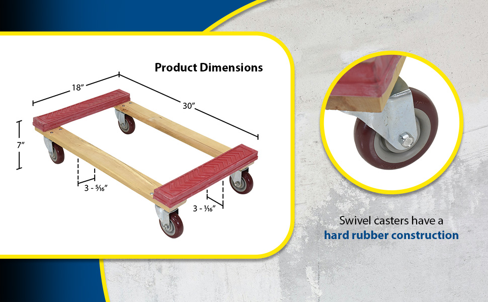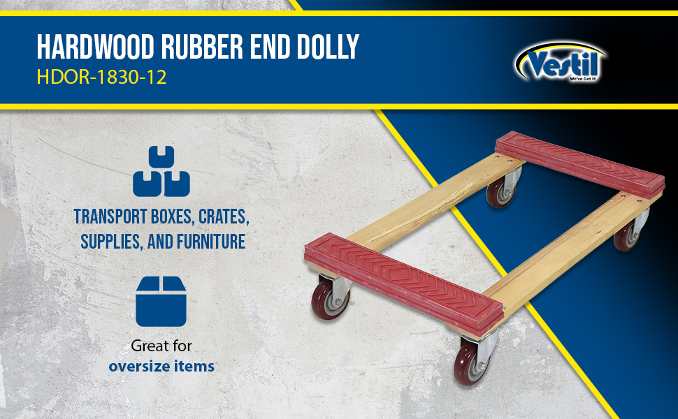| Hardwood Dolly Rubber Ends 30 In. x 18 In. x 7 In. 1200 Lb. Capacity Tan | Uniform Static Capacity (lb.): 1,200 Deck Width (in.): 18 | 14 |