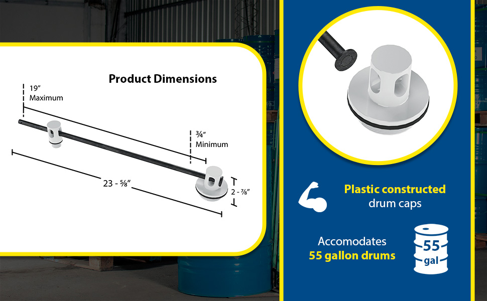DDL-55-P DDL-55-PPlastic Double Drum Lock 55 Gallon 3 In. x 23-1/8 In. x 3 In. Black/WhiteAccomodates Drum Size: 55 Gallon