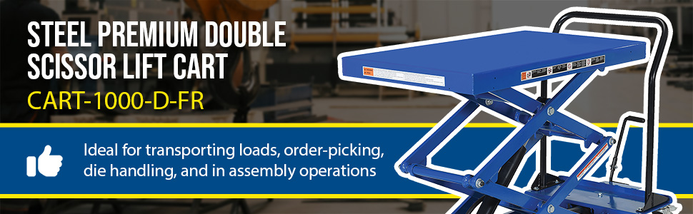 Constructed of heavy duty steel and designed to withstand the most demanding industrial environments. Ideal for lifting and transporting loads, order-picking, die handling, and for use in support of assembly operations. Little exertion is required to raise and lower the deck with the high quality, foot-actuated, single-speed hydraulic pump. The hydraulic system is equipped with an overload protection valve. The hand operated carts have safety stops to prevent an empty deck from lowering while performing maintenance. The foot operated carts have a unique tilt-up table top that allows for safe and easy maintenance. Two (2) rigid front casters and two (2) rear swivel polyurethane casters with brake provide a high degree of maneuverability; each swivel wheel is protected by guards and is equipped with brakes.