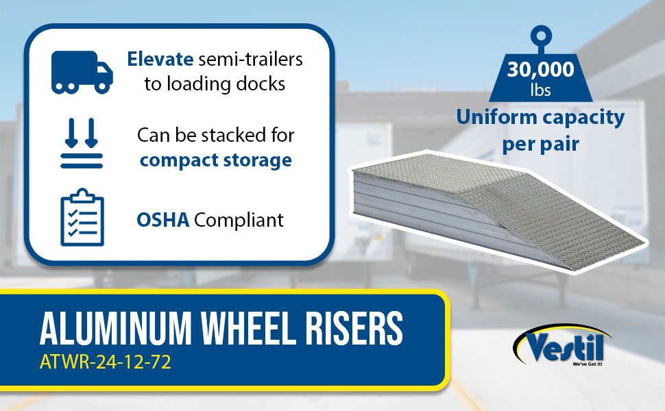 | Aluminum Tread Plate Wheel Riser with Roll Off Guard 72 In. x 24 In. x 12 In. 30000 Lb. Capacity Silver | Uniform Capacity (lbs.): 30000 | 171 |