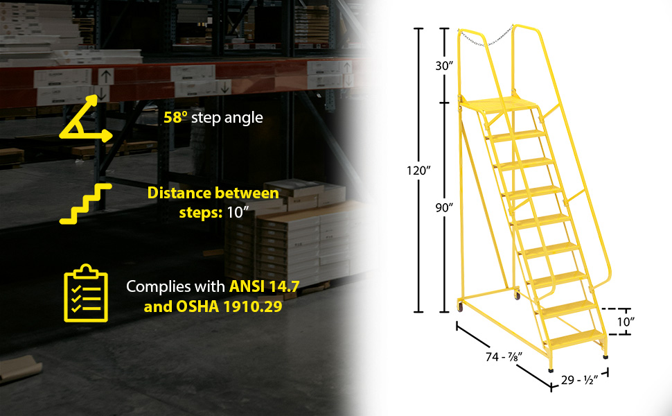 | Steel Maintenance Ladder 58 Degree 9 Perforated 24 In. Step Width 350 Lb. Capacity Yellow | Uniform Capacity (lb.): 350 Step Angle (degrees): 58 | 279 |