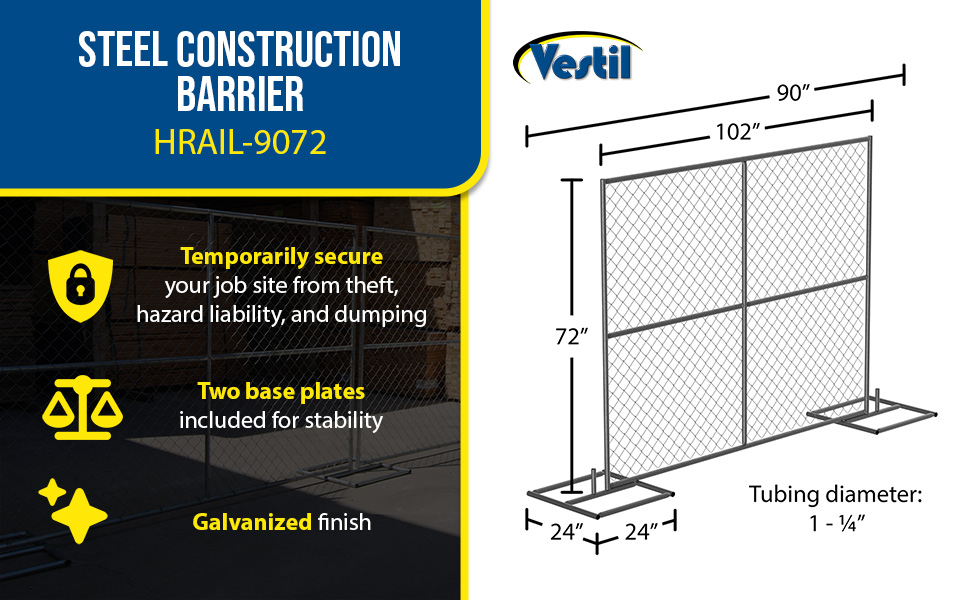 HRAIL-A-9072 HRAIL-A-9072Galvanized Steel Construction Safety Barrier Add On Unit For HRAIL-9072Panel and Base Tubing Diameter (in.): 1-1/4