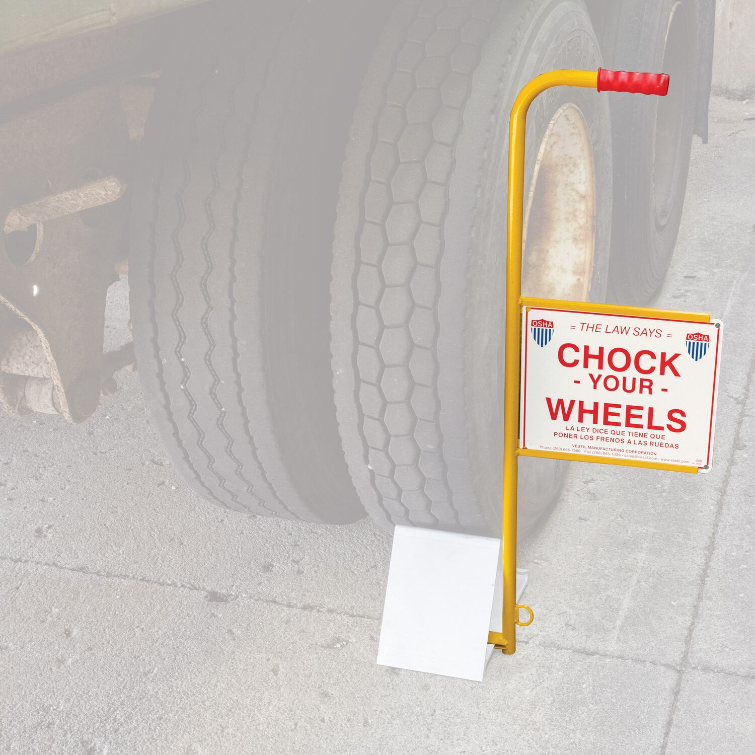 (-FYL) chock is powder coated fluorescent yellow for clear visibility.