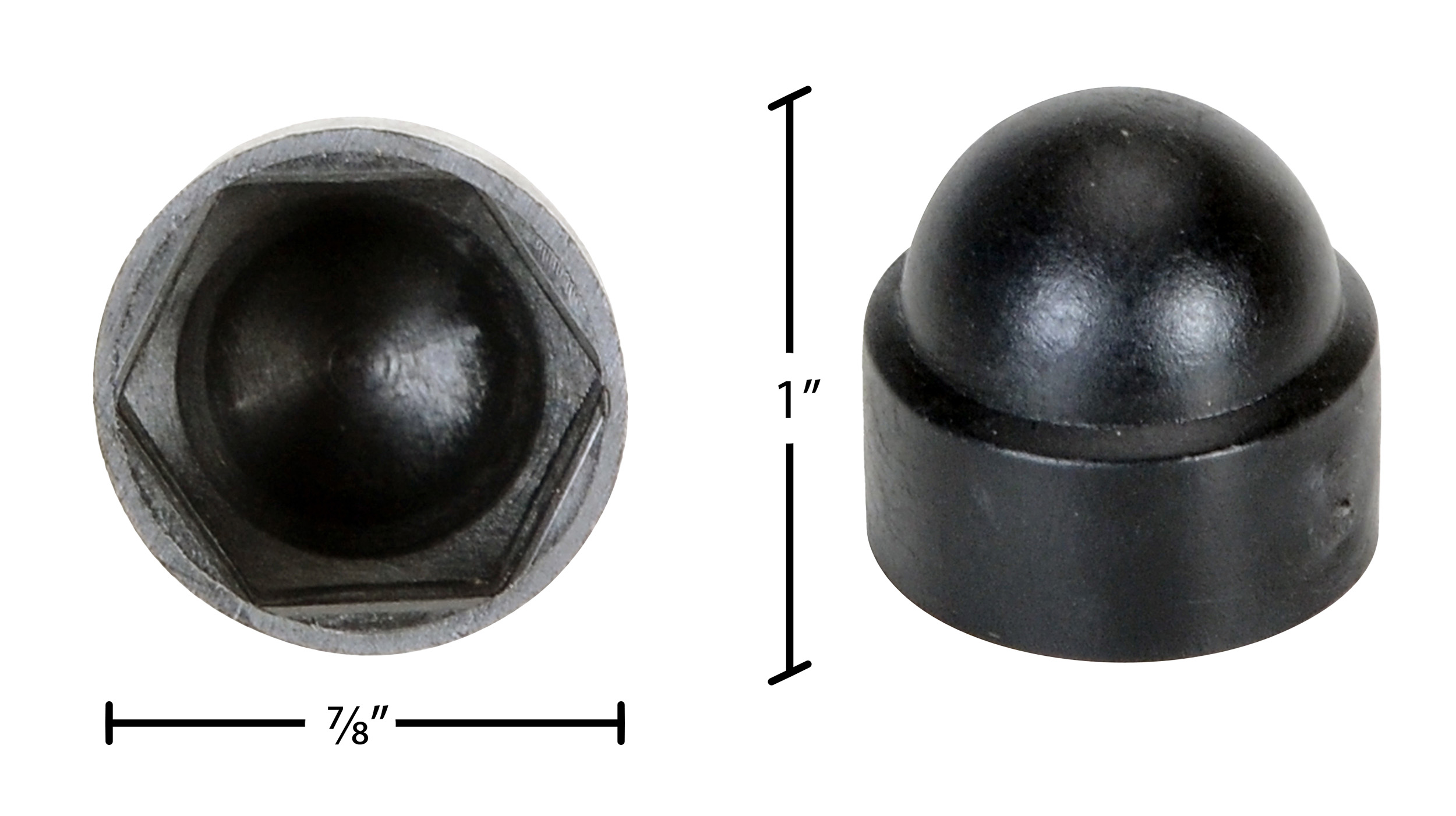 These plastic bolt caps are designed to finish and protect bolt heads. They have an easy press fit installation over the existing nut. Molded black plastic construction.