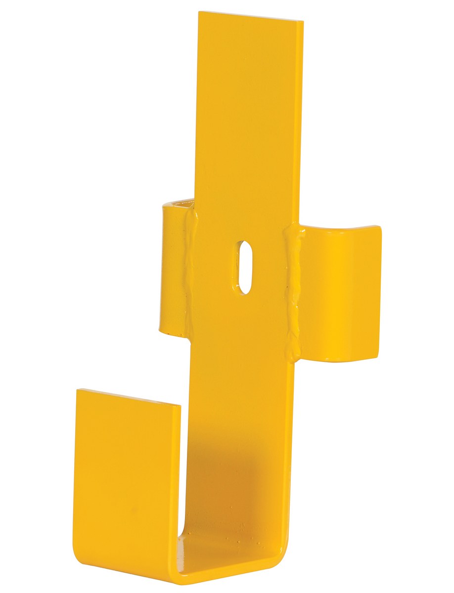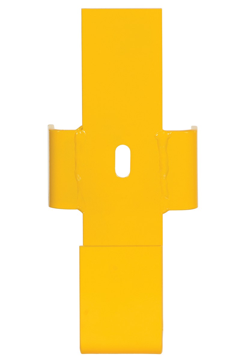 Steel Center Post Mounting Bracket For Drop In Guard Rail System YellowExtra post mounting bracket for guard rail system is a great asset to a new or existing guard rail. Pre-drilled hole for simple installation. A strong steel construction for long term use.