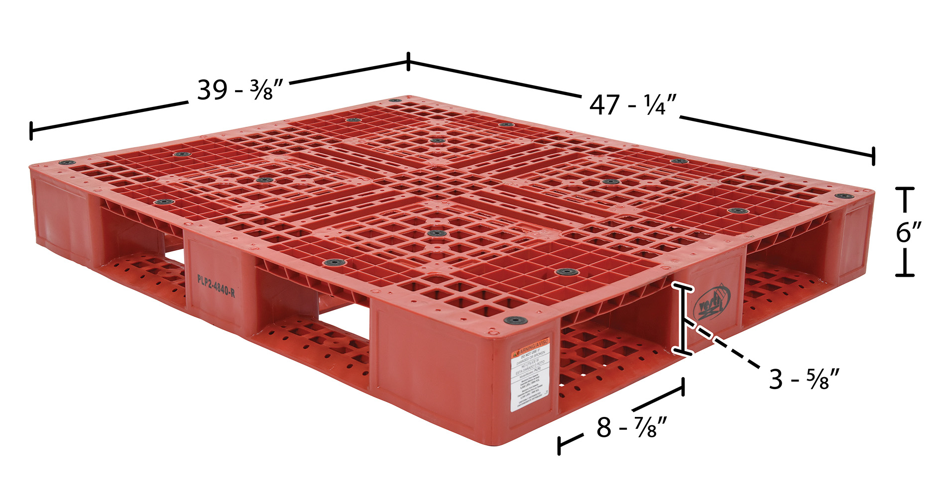 High Density Polyethylene Pallet 39-1/2 In. x 47-3/8 In. x 6 In. 8000 Lb. Capacity RedPlastic pallets are stackable for efficient storage. Made of high-density virgin polyethylene for long life. Plastic pallets are maintenance free and safer to handle than wooden pallets. Features a four-way entry and serrated deck with holes for drainage. Plastic pallets are ideal for export, pharmaceutical, medical, and food applications.