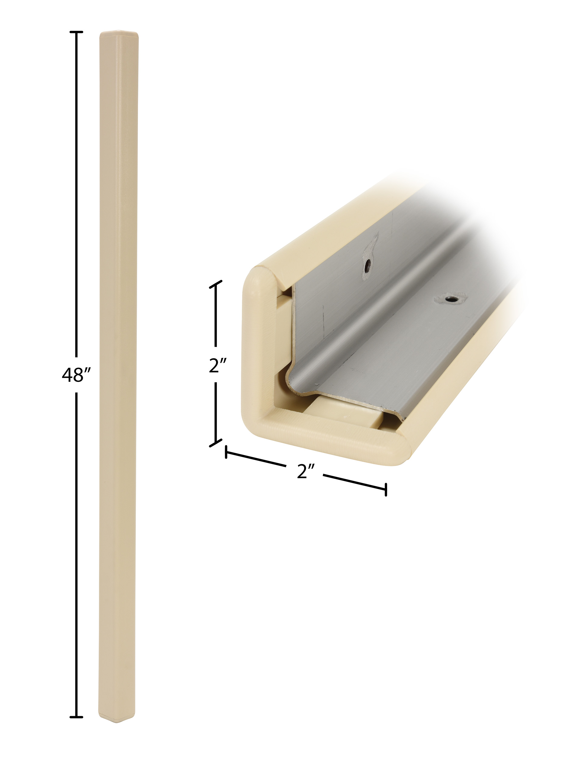 PVC Plastic Corner Protector with Aluminum Insert 2 In. x 2 In. x 48 In. 90 Degree BeigeThe plastic corner protector with aluminum insert provides for quick and easy corner protection. An external shell made from PVC plastic. Inner structure made from aluminum. Insert is pre-drilled. Four (4) holes on one side, five (5) holes on the other side. Installation hardware is not included.