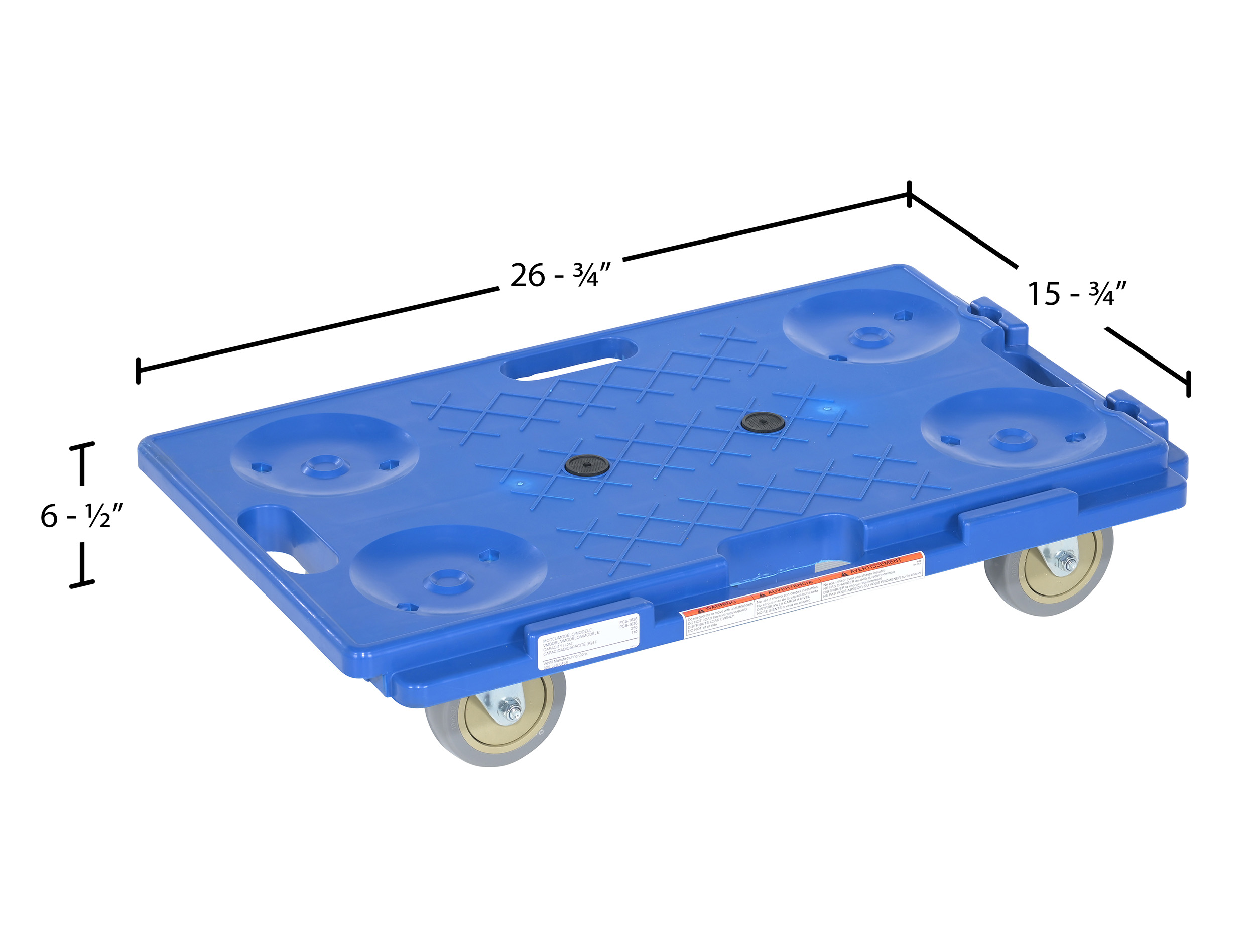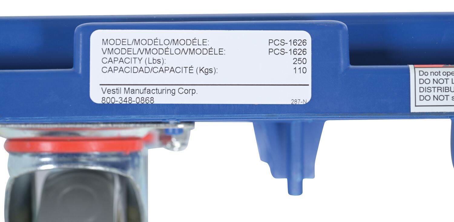 PCS-1626 PCS-1626Plastic Interlocking Dolly 26-3/4 In. x 15-3/4 In. x 6-1/2 In. 250 Lb. Capacity BlueUniform Capacity (lb.): 250