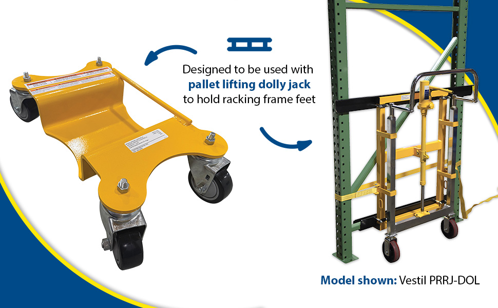 • Pallet rack lifting dollies are designed for moving empty fully-assembled pallet racking