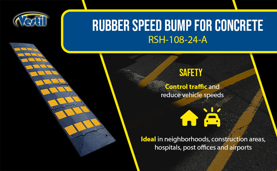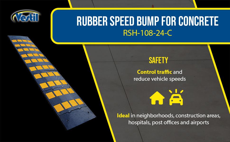 RSH-108-24-C RSH-108-24-CRubber Speed Hump Concrete Hardware 110-3/4 In. x 23-1/2 In. x 1-5/8 In. 40000 Lb. Capacity Black / YellowUniform Capacity (lb.): 40,000