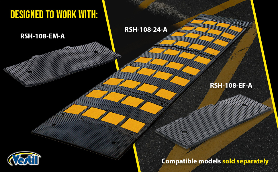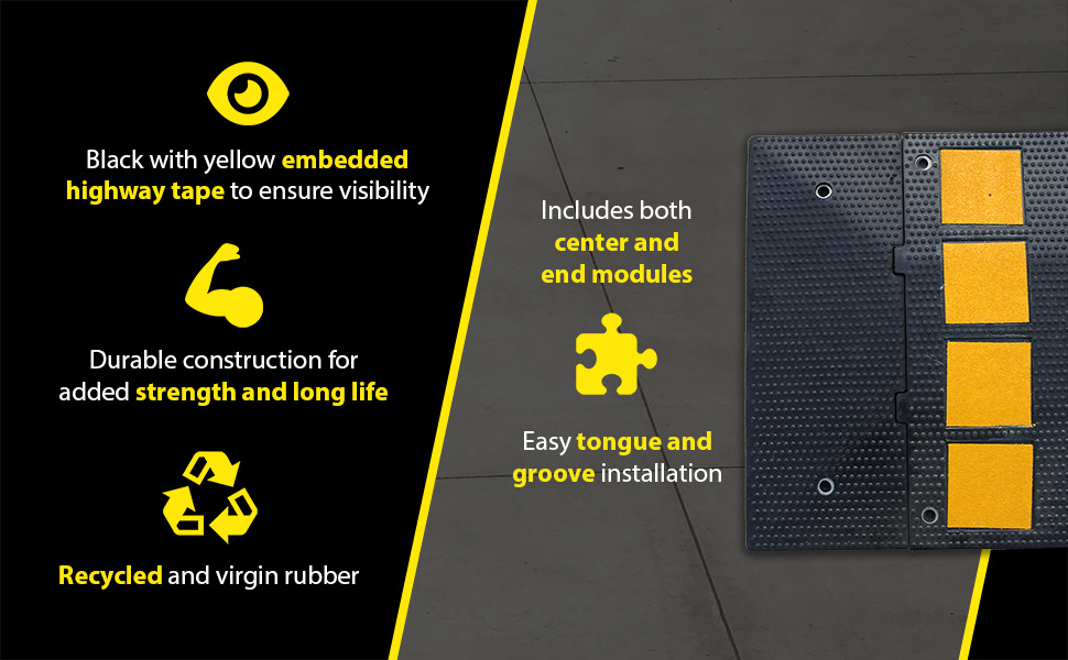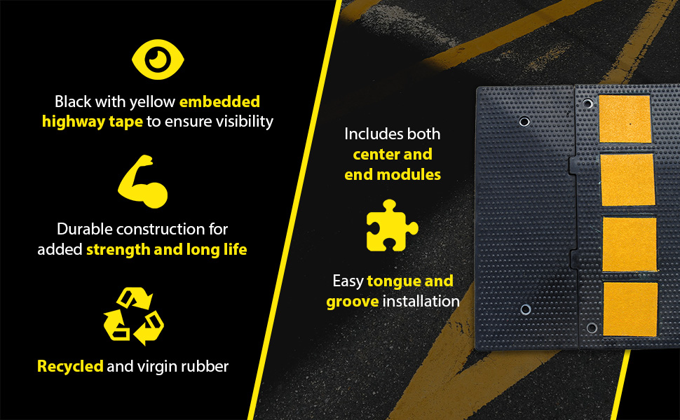 Series RSH are constructed of recycled and virgin rubber. Units are black with yellow embedded highway tape to ensure high visibility. Units include (5) center and (2) end module's.