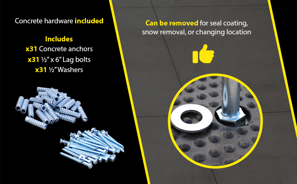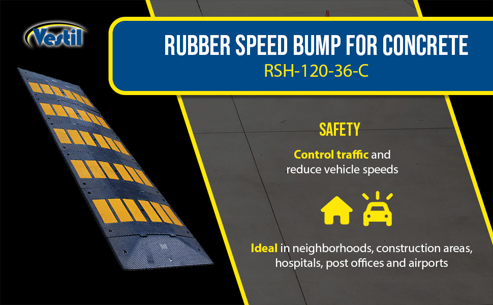 RSH-120-36-C RSH-120-36-CRubber Speed Hump Concrete Hardware 118-11/16 In. x 35-1/4 In. x 1-7/8 In. 60000 Lb. Capacity Black / YellowUniform Capacity (lb.): 60,000