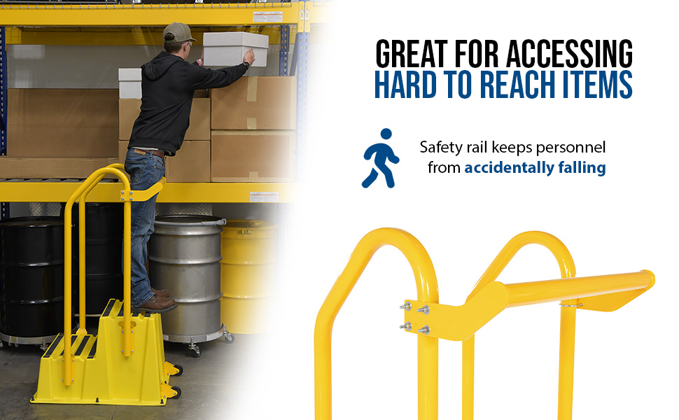 SPN-3-YL-HR-PO SPN-3-YL-HR-POPolyethylene Nestable with Handrails Casters 3 Step 500 Lb. Capacity YellowUniform Capacity (lb.): 500