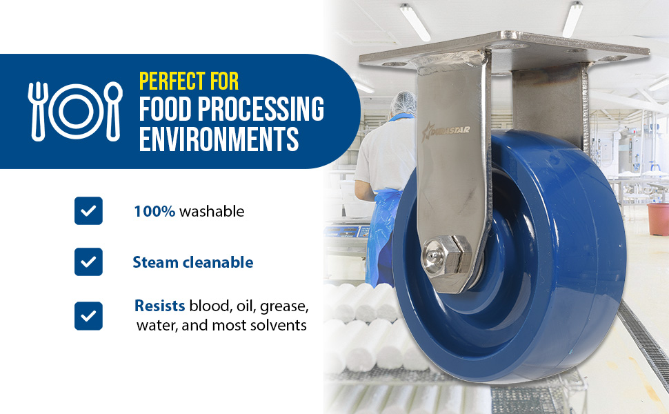 Made of heavy gauge cold rolled 304 stainless steel. solid polyurethane tread is 100% washable. The upgraded proprietary tread is steam cleanable, and can resist oil, grease, water and most solvents. The one piece mold eliminates bonding failure, and provides a higher impact resistance. Perfect for food processing, bakeries, laboratories, medical facilities, and other stainless steel applications.