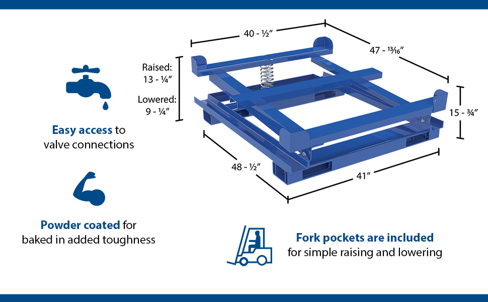 IBC-TLT-FP IBC-TLT-FPSteel Intermediate Bulk Container Tilt Stand with Fork Pockets 48-1/2 In. x 15-3/4 In. 4400 Lb. Capacity BlueUniform Capacity (lb.): 4,400