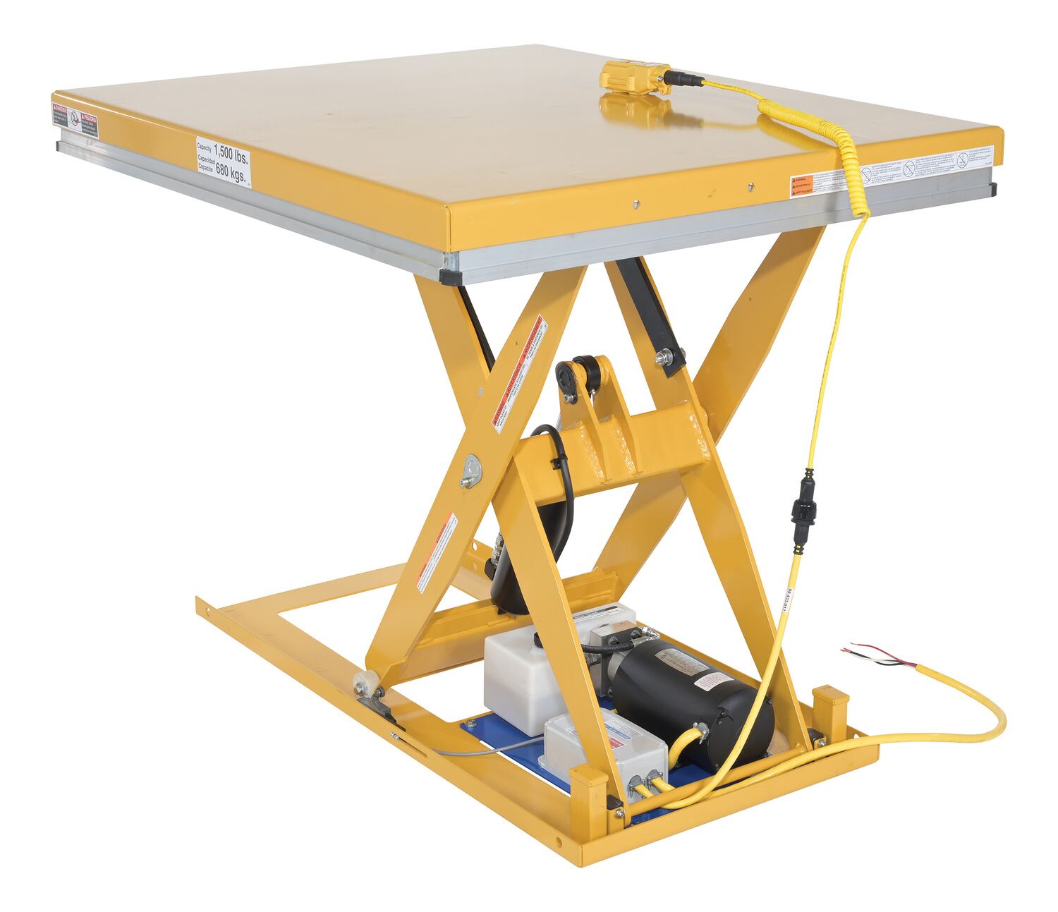 EHLT-WS-2436-1.5-31 EHLT-WS-2436-1.5-31Steel Work Station Electric Hydraulic Scissor Table 24 In. x 36 In. 1500 Lb. Capacity YellowUniform Capacity (lb.): 1,500