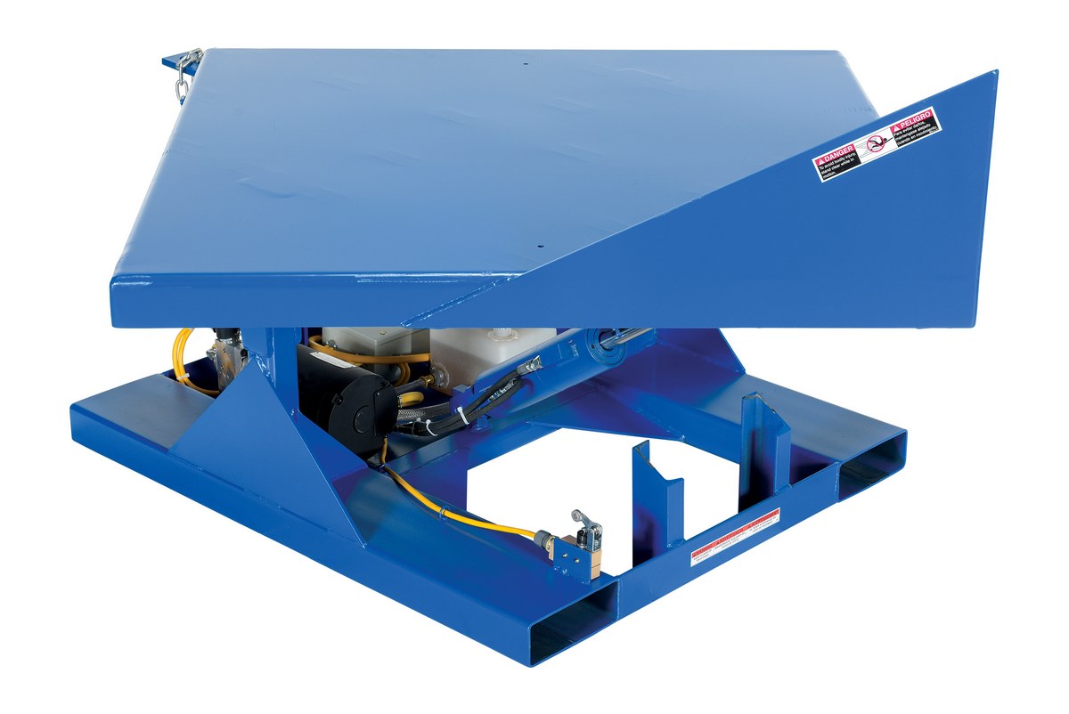 460V 3-PHASE STANDARD Reduce repetitive motion injuries and fatigue, while making your job easier and faster. Designed to corner tilt pallets, crates, boxes, or baskets. AC powered with 2HP 460V 3 phase with a push button control, other voltages available. Built-in fork tubes for easy portability with a fork truck.