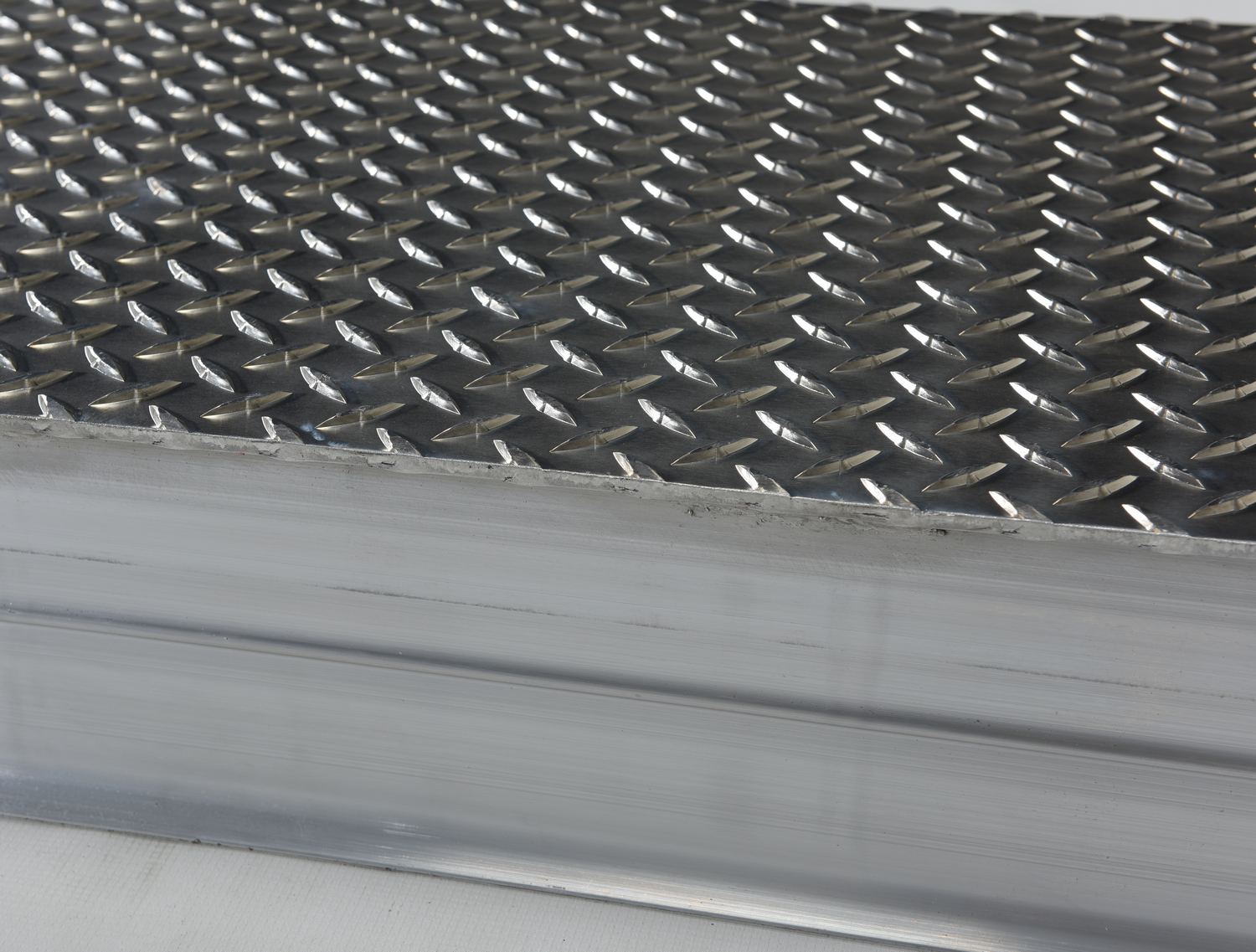 ATWR-ROG-18-12-120 ATWR-ROG-18-12-120Aluminum Tread Plate Wheel Riser with Roll Off Guard 120 In. x 18 In. x 14-1/16 In. 30000 Lb. Capacity SilverUniform Capacity (lbs.): 30,000