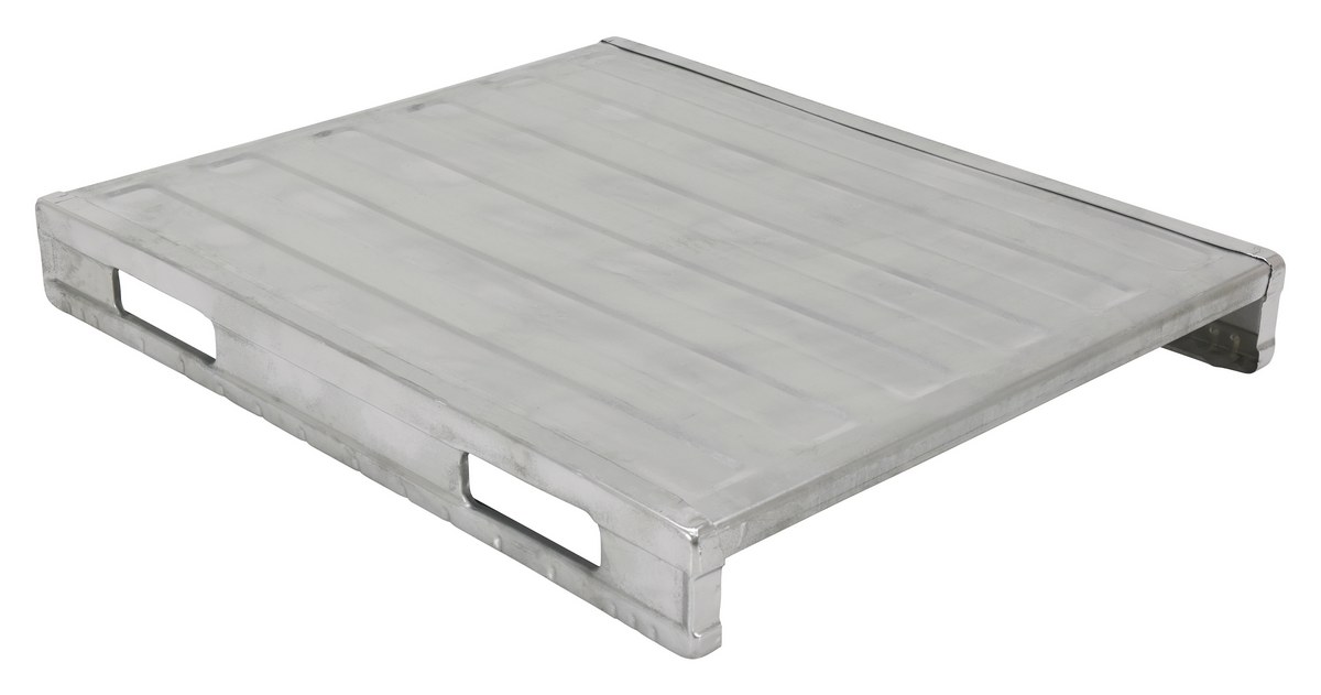 The heavy-duty non-reversible welded steel Solid Deck Pallet are ideal to transport and store products within your facility and/or to transport them between facilities. Galvanized finish for rust resistance. Usable fork pockets are 8-1/2"W x 2-1/2"H. Open end usable size is 35"W x 3-3/4"H.