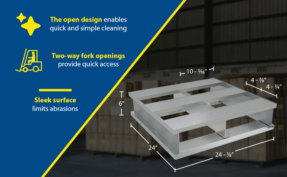AP-4824 AP-4824Aluminum Heavy Duty Half Pallet 24 In. x 48-1/8 In. x 6 In. 4000 Lb. Capacity SilverUniform Capacity (lb.): 4,000