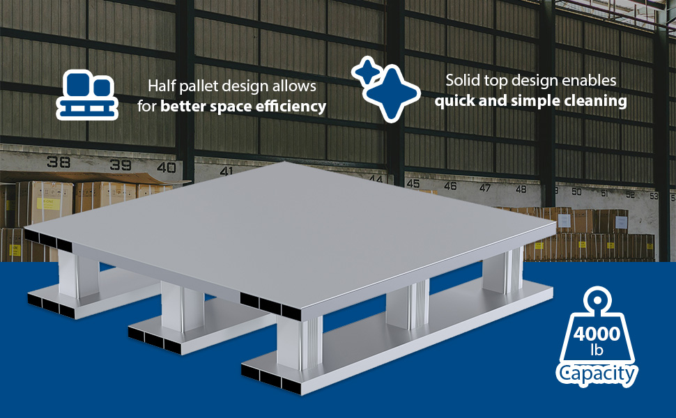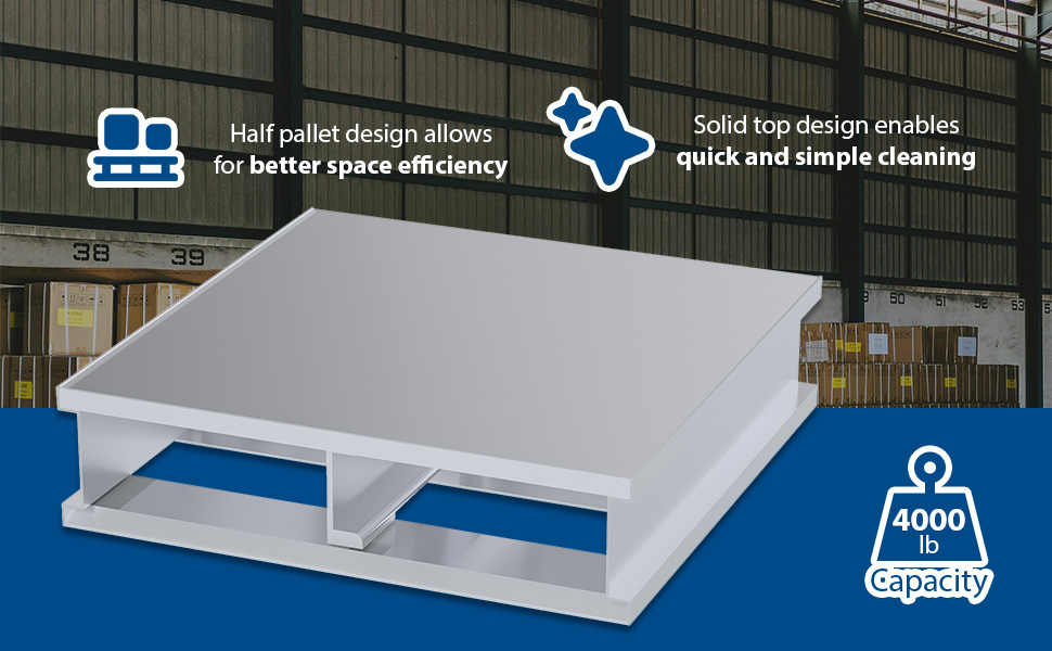 AP-ST-4024 AP-ST-4024Aluminum Heavy Duty Solid Top Half Pallet 24 In. x 40-1/8 In. x 6 In. 4000 Lb. Capacity SilverUniform Capacity (lb.): 4,000
