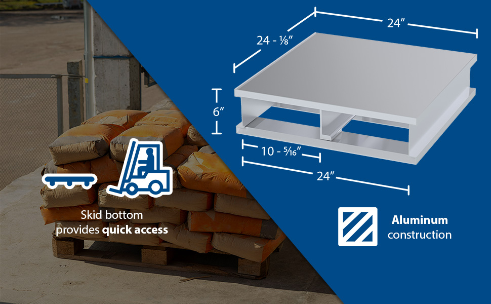 AP-ST-2424-SB AP-ST-2424-SBAluminum Half Solid Top with Skid Bottom 23-7/8 In. x 23-7/8 In. x 5-1/8 In. 4000 Lb. Capacity SilverUniform Capacity (lb.): 4,000