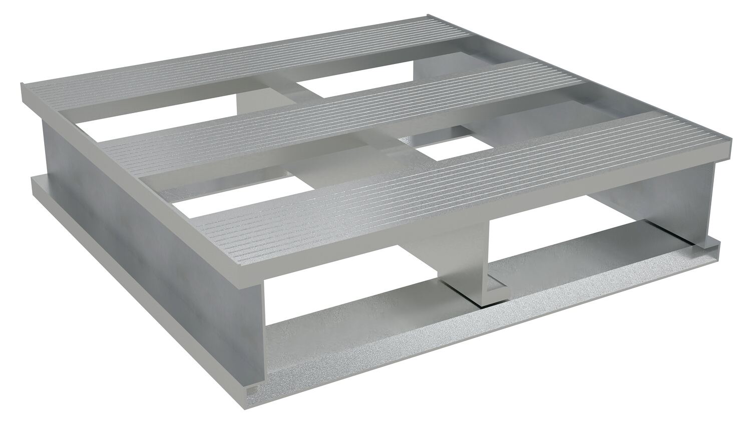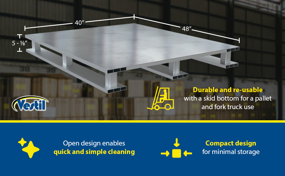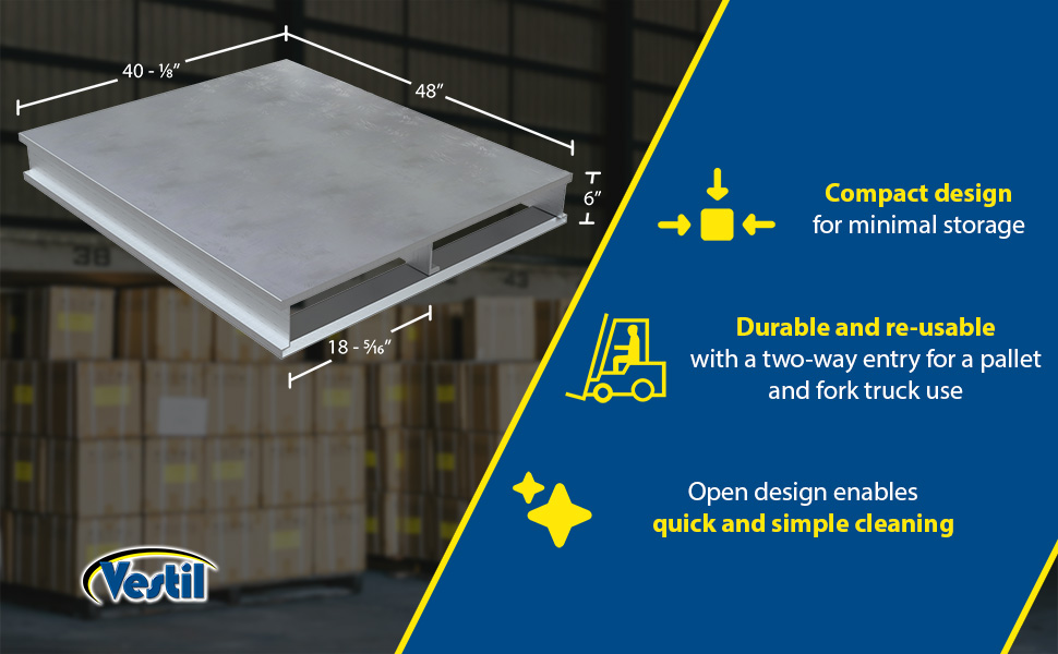 A welded Aluminum Pallet is a great asset for a variety of industries. The open design enables quick and simple cleaning. This pallet is durable and re-usable with a two-way entry for pallet and fork truck use. Large static capacity allows for load both big and small.