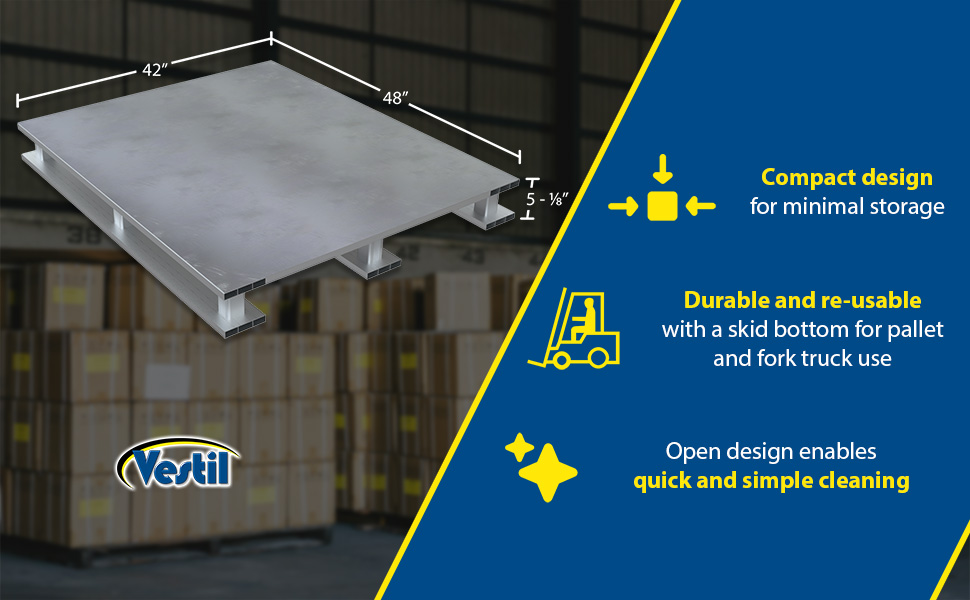 AP-4248-SB AP-4248-SBAluminum Skid Bottom Pallet 47-7/8 In. x 42 In. x 5-1/16 In. 6000 Lb. Capacity SilverStatic Capacity (lb.): 6,000