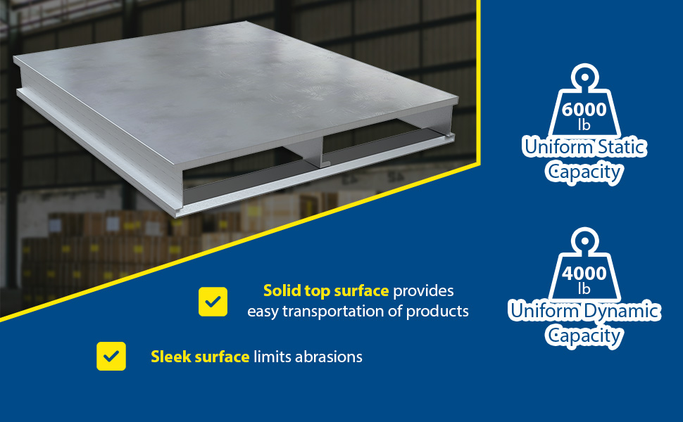 AP-ST-4248-SB AP-ST-4248-SBAluminum Solid Top with Skid Bottom 42 In. x 48 In. 6000 Lb. Capacity SilverStatic Capacity (lb.): 6,000