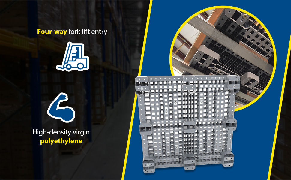 PLPG-4848 PLPG-4848High Density Polyethylene Standard Rackable Pallet/Skid 47-1/4 In. x 47-1/4 In. x 6 In. 22,000 Lb. Floor Capacity BlackUniform Floor (static) Capacity (lb.): 22,000