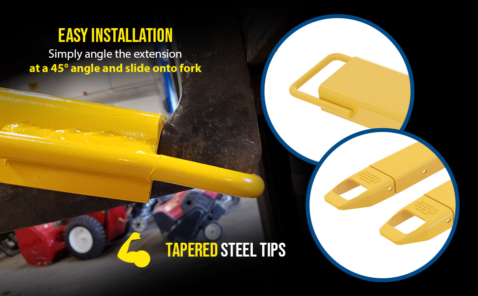 FE-5-48 FE-5-48Steel Fork Extensions 5 In. x 48 In. 4000 Lb. Capacity YellowUniform Capacity Per Pair (lb.): 4,000