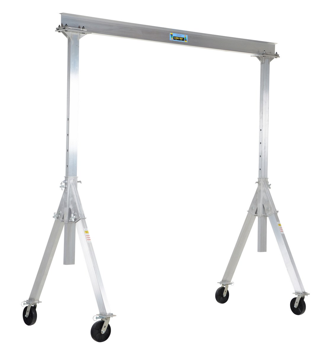 AHA-2-10-8 AHA-2-10-8Aluminum Adjustable Height Gantry Crane with Glass Filled Nylon Casters 10 Ft. Wide x 8 Ft. Max Usable Height 2,000 Lb. Capacity SilverUniform Capacity (lb.): 2,000
