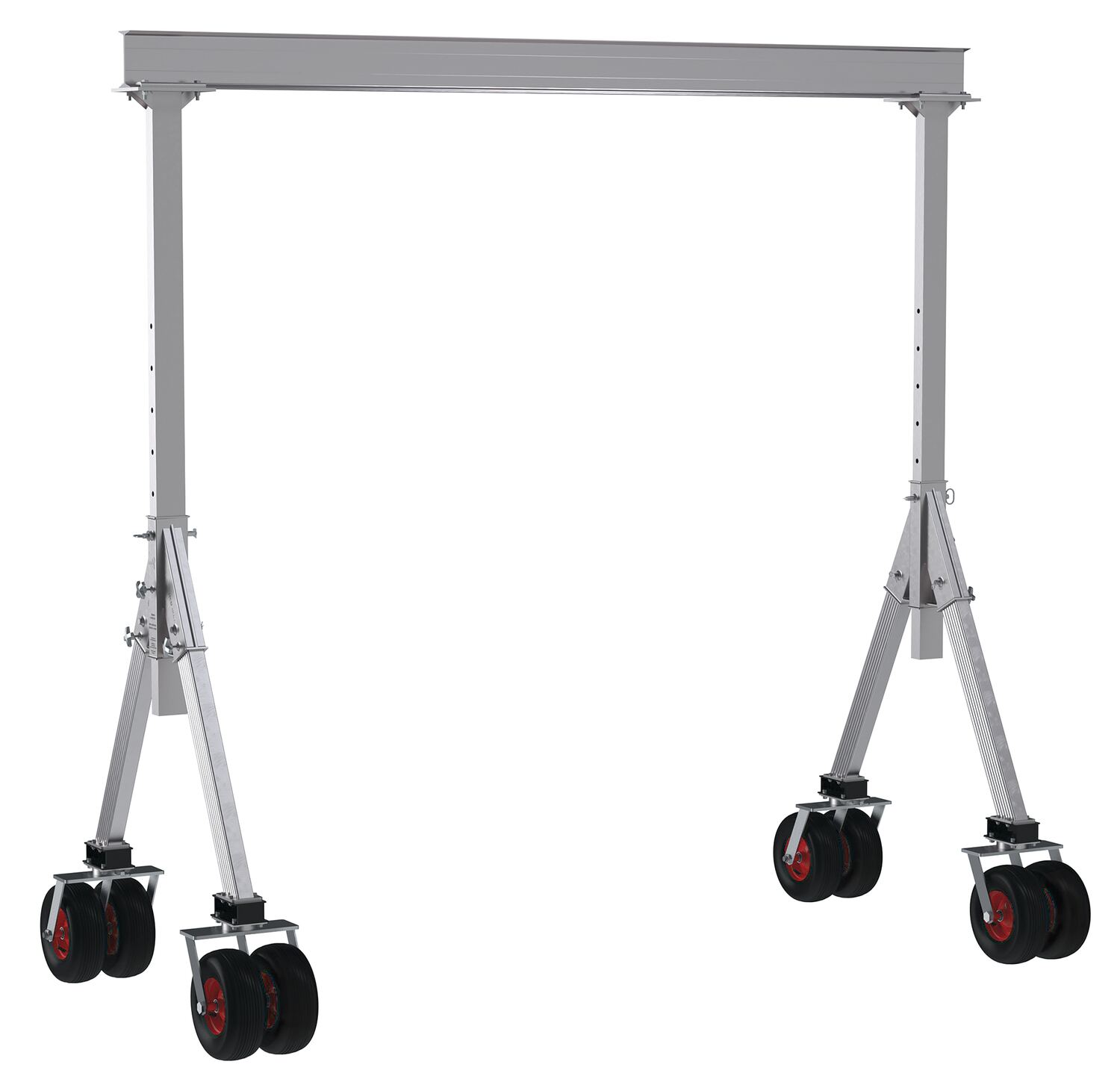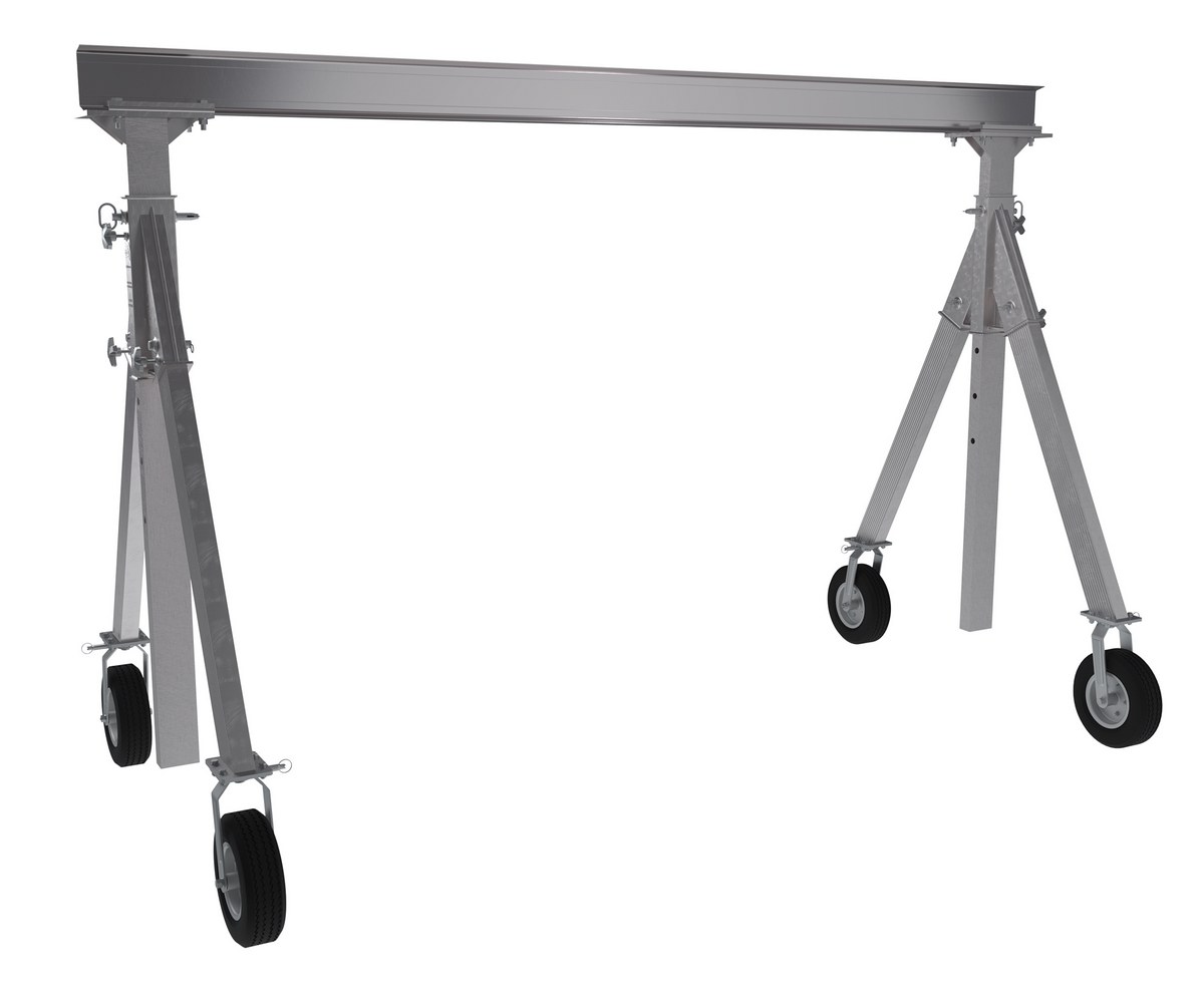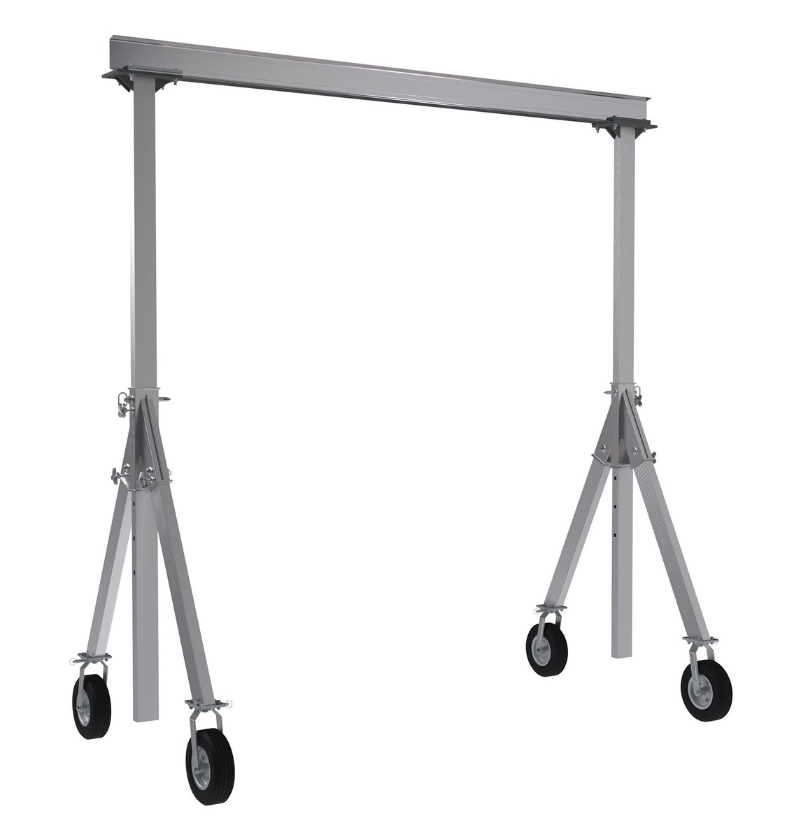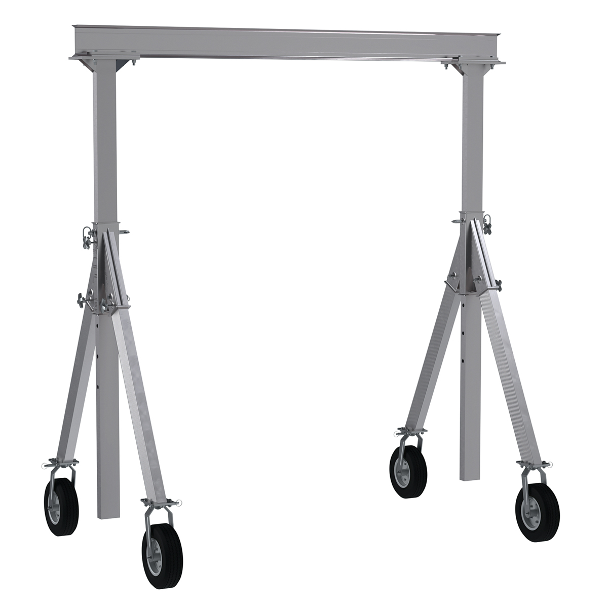 AHA-15-10-8-PNU AHA-15-10-8-PNUAluminum Adjustable Height Gantry Crane with Pneumatic Casters 10 Ft. Wide x 8 Ft. Max Usable Height 1,500 Lb. Capacity SilverUniform Capacity (lb.): 1,500