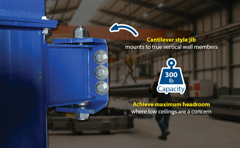 • Cantilever style jib mounts to true vertical wall members