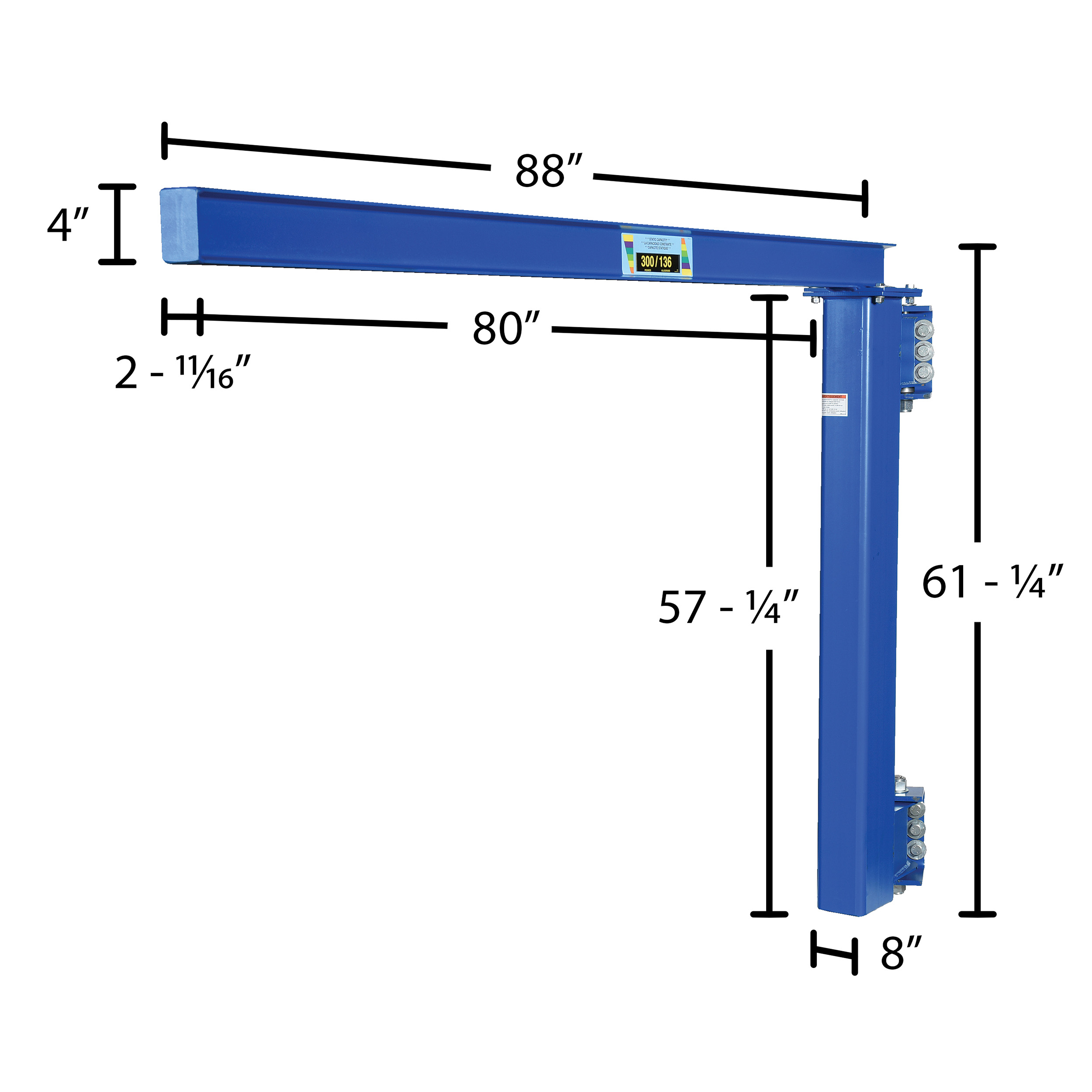 JIB-LC-3 JIB-LC-3Steel Low Clearance Tie Rod Jib 80 In. I-Beam 300 Lb. Capacity BlueUniform Capacity (lb.): 300