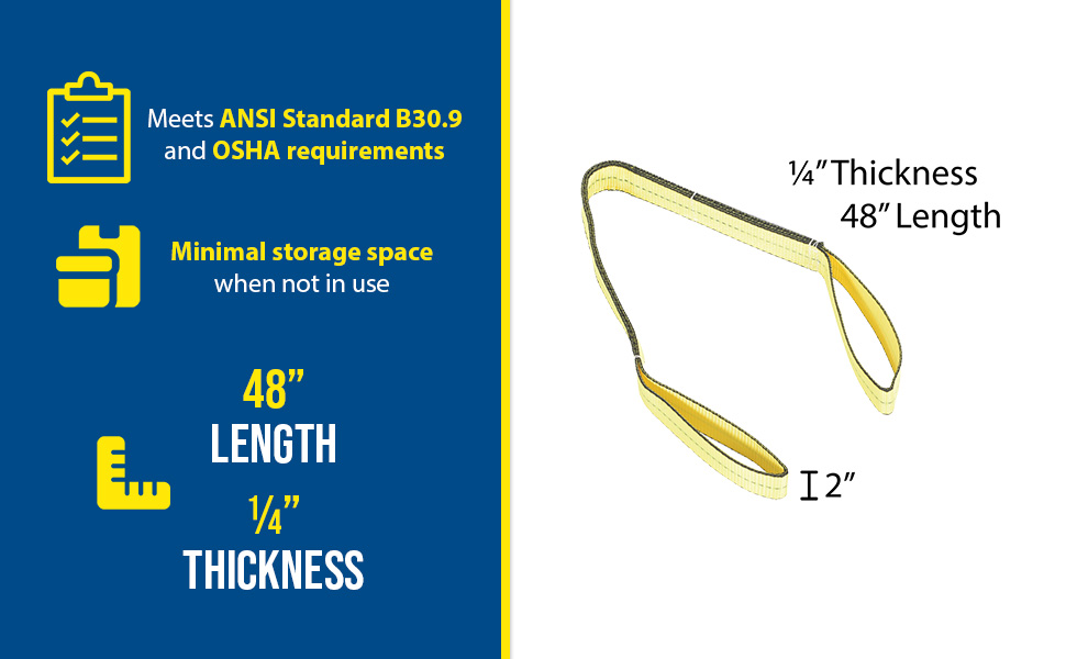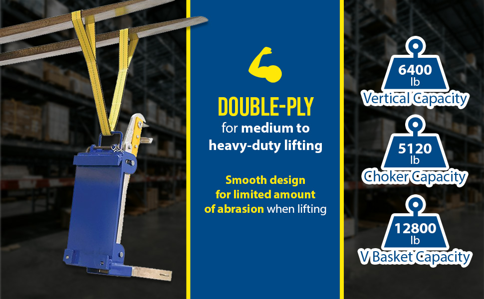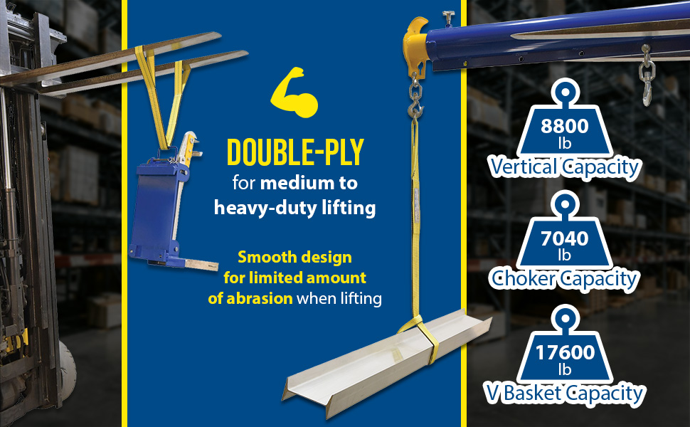 For medium to heavy-duty lifting, these double-ply lifting slings are the practical, economical answer to many lifting problems. Double capacity when used in basket-style. Reduce capacity 20% when used in choker-style. These slings meet ANSI standard B30.9 and OSHA requirements.