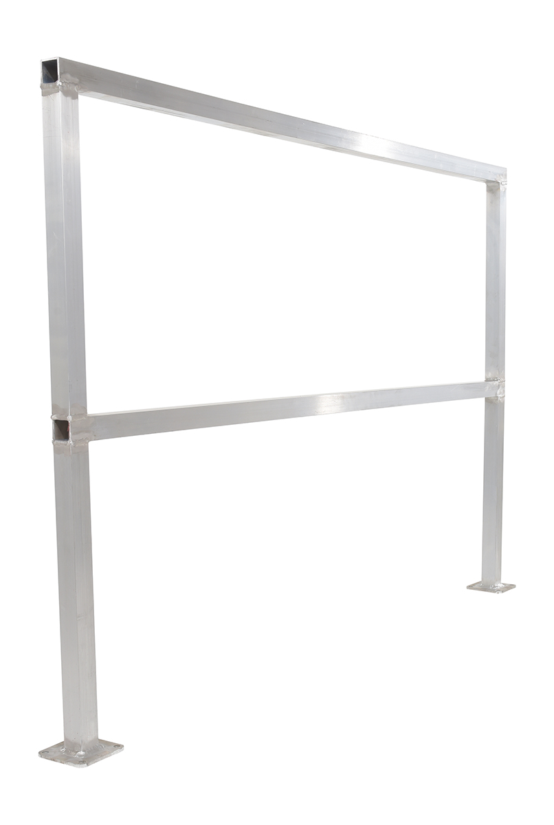 Aluminum Square Safety Handrail provides an economical way to protect people and machinery. Applications include loading docks, floor openings, walkways, and mezzanines. Robust design provides stabilization throughout those areas.