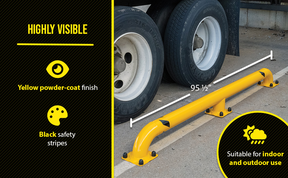 SWAC-92_D.jpgIdeal for properly aligning trailers at loading docks. All welded steel construction suitable for indoor or outdoor use. Units must be secured to surface. Heavy-duty welded-steel construction with a yellow baked in powder-coat finish for toughness. 8" x 8" base plates, each with (4) pre-drilled holes standard.