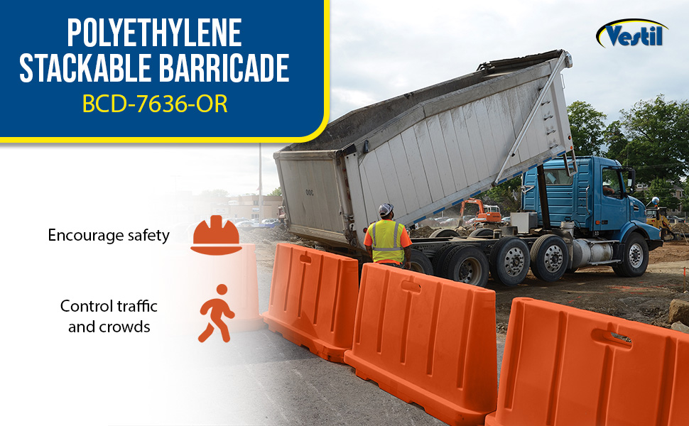 BCD-7636-OR BCD-7636-ORPolyethylene Stackable Barricade 76-1/2 In. x 16 In. x 36 In. OrangeMaterial Thickness (in.): 0.15