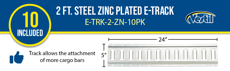 E-TRK-2-ZN-10PK E-TRK-2-ZN-10PK Steel Zinc Plated E-Track 2 Ft. Length 10 Pack Gray 90 Days Limited Warranty 30
