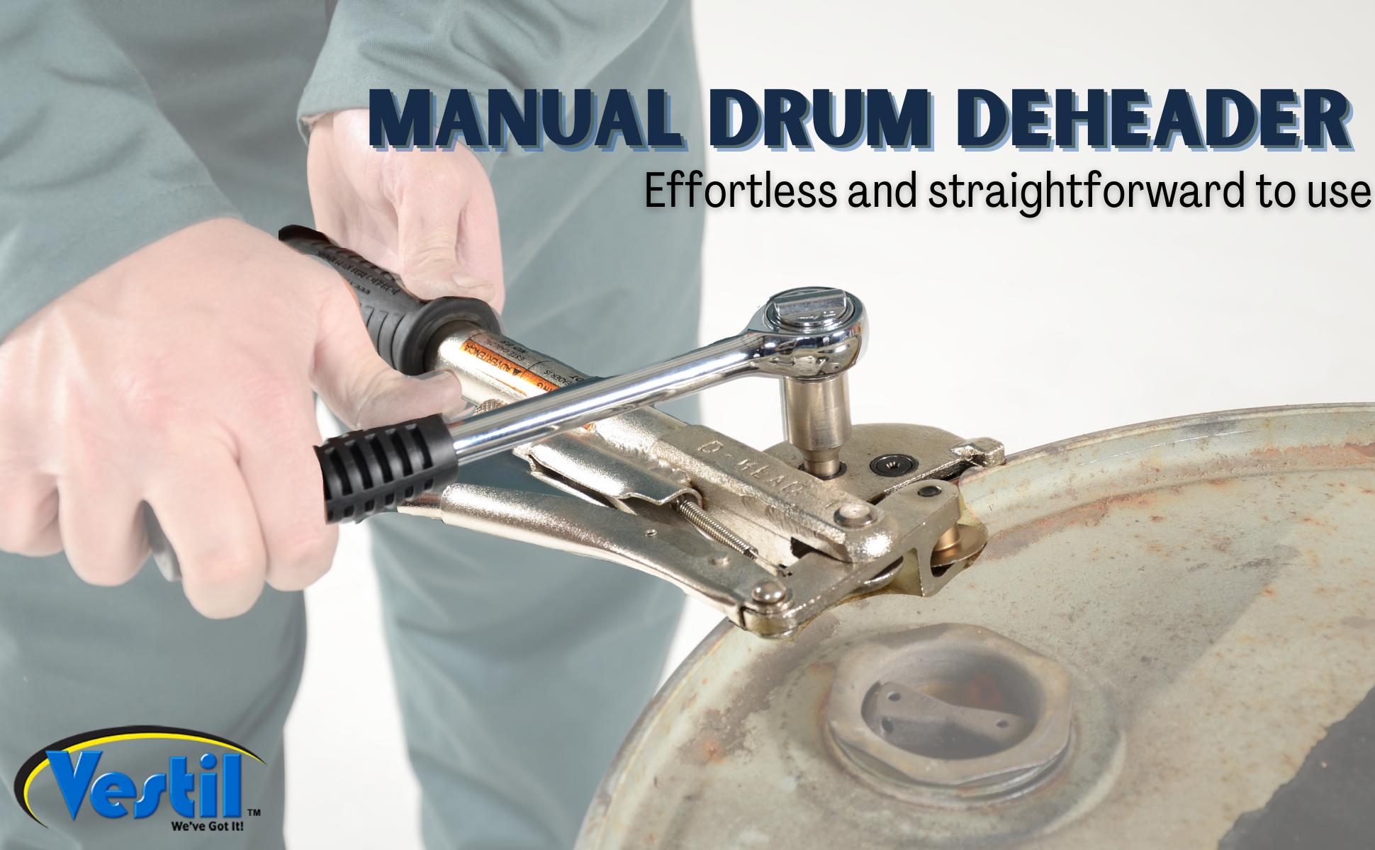 Quickly remove the head of a steel drum with our Express-Open Drum Deheader. Unique design, model D-HEAD-1, is similar to a household can-opener and is very easy to use. Includes vice-grip style mechanism for securely attaching unit to drum. Inside cutting blade does not leave a sharp edge on the drum. ONLY use either a 1/2" manual ratchet wrench or electric drill to operate the deheader ratchet (ratchet drive not included).