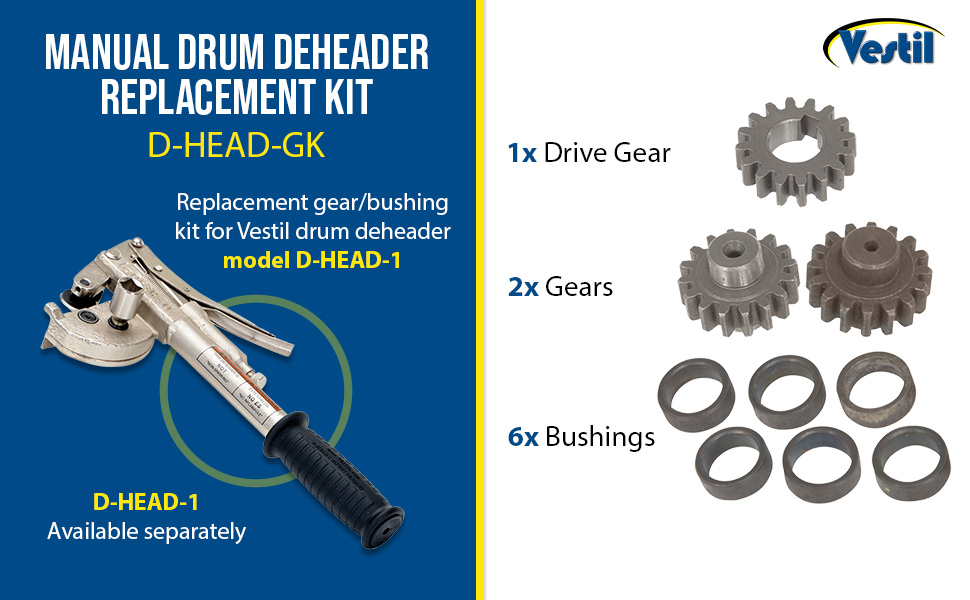 D-HEAD-GK D-HEAD-GK Steel Manual Drum Deheader Replacement Gear/Bushing Kit For … 30 Days Limited Warranty 1