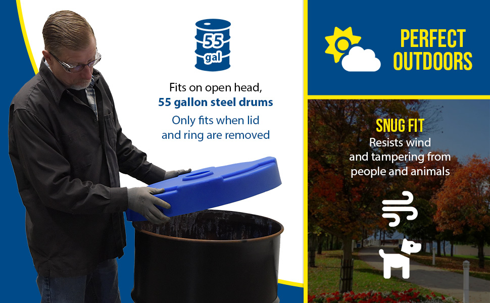 DC-P-55-CANF-UF-BU DC-P-55-CANF-UF-BULow Density Polyethylene Drum Recycling Lid with Flaps Universal 55 Gallon BlueOverall Diameter (in.): 24-5/8