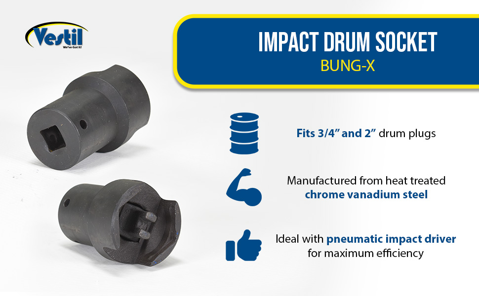 BUNG-X BUNG-XImpact Drum Socket 1/2 In BlackDrum Socket Accommodates (in.): 2 and 3/4