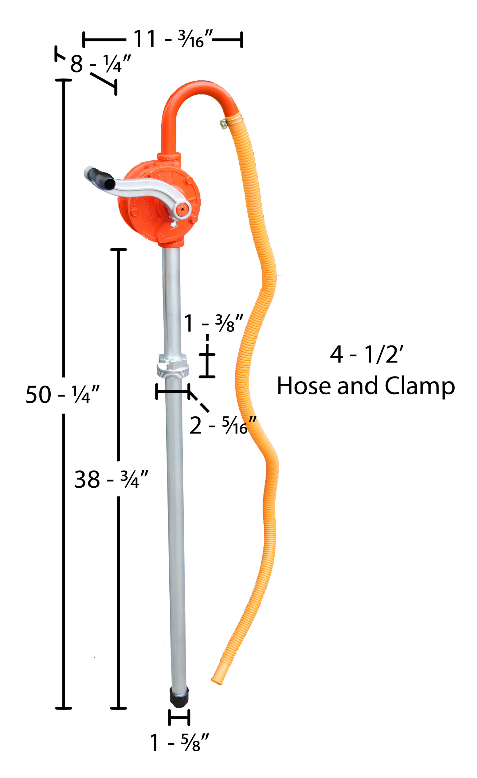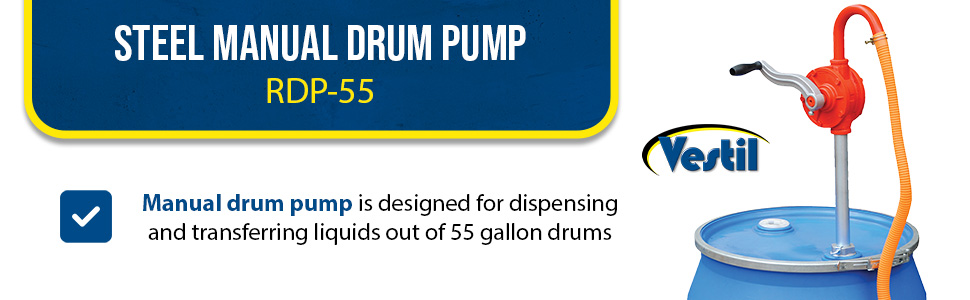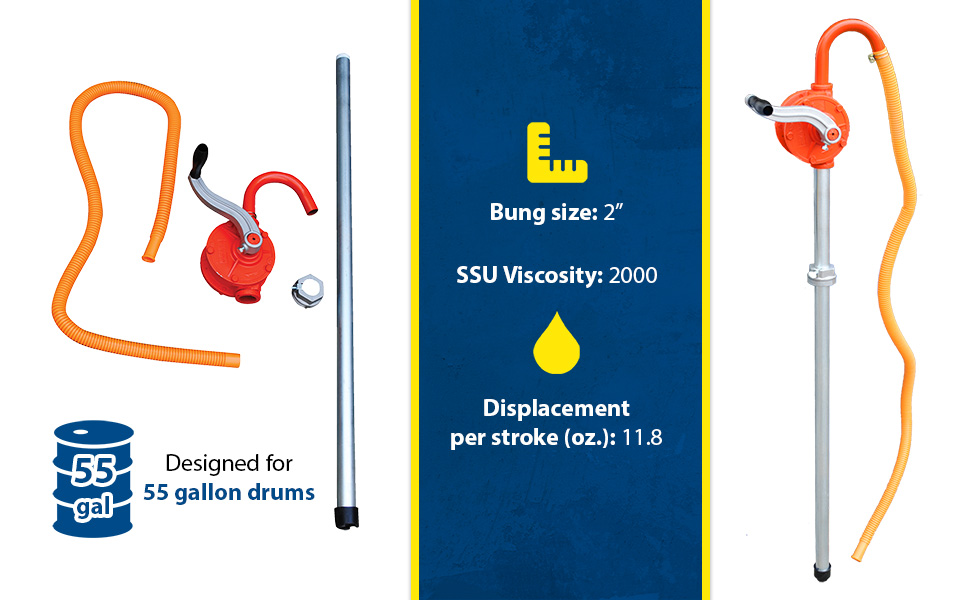 RDP-55 RDP-55Steel Manual Drum Pump 2 In. Bung Size 5-1/2 In. x 8-1/2 In. x 51 In. OrangeDisplacement per Stroke (oz..): 11.8