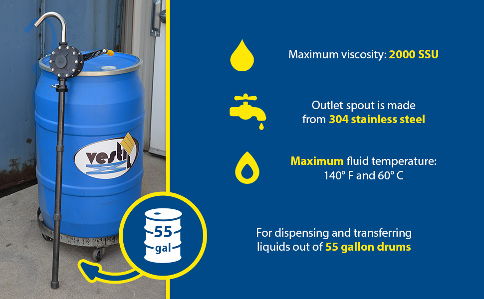 For dispensing and transferring liquids out of 55-gallon drums.