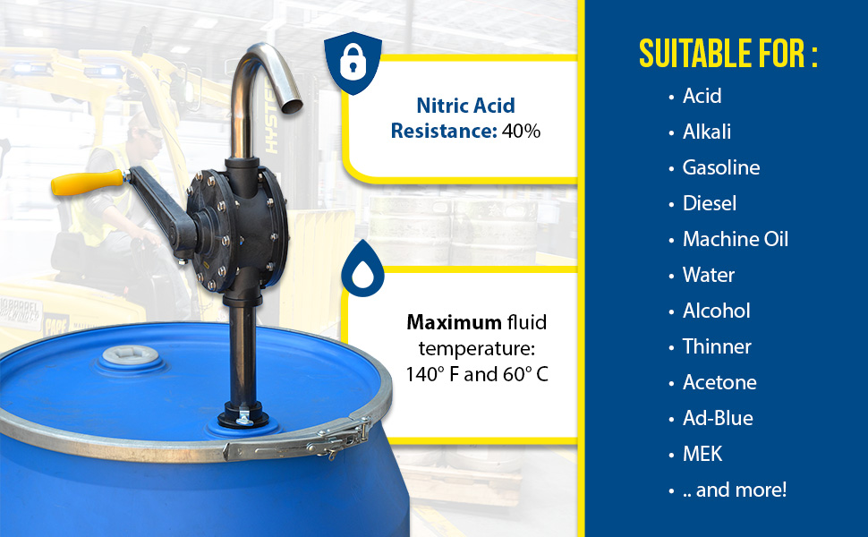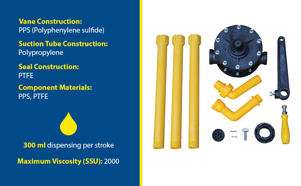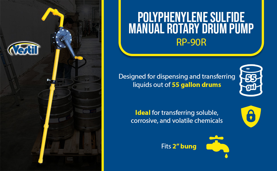 RP-90R RP-90RPolyphenylene Sulfide Manual Rotary Drum Pump 10 In. x 8 In. x 12 In. YellowPump Type: Rotary - Vane