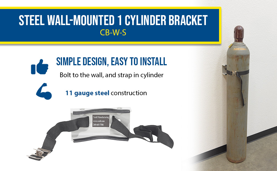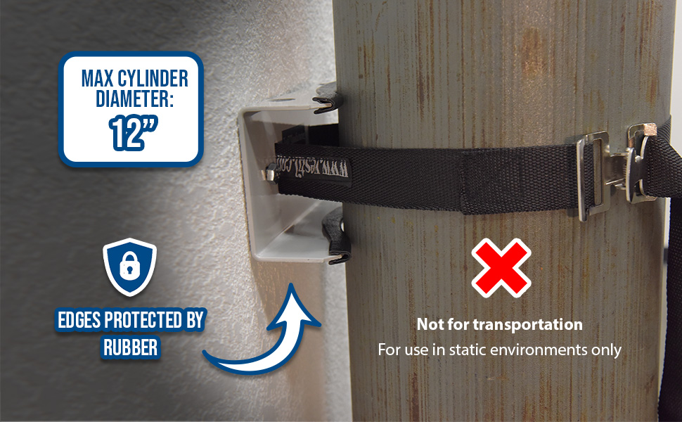 Simple design is easy to install. Simply bolt to wall and then secure cylinder with strap. Edges are protected with rubber guards on the steel units. Choose either steel or molded plastic construction. Maximum 12" cylinder diameter. For use in non-moving, static environments. Installation hardware is not included.