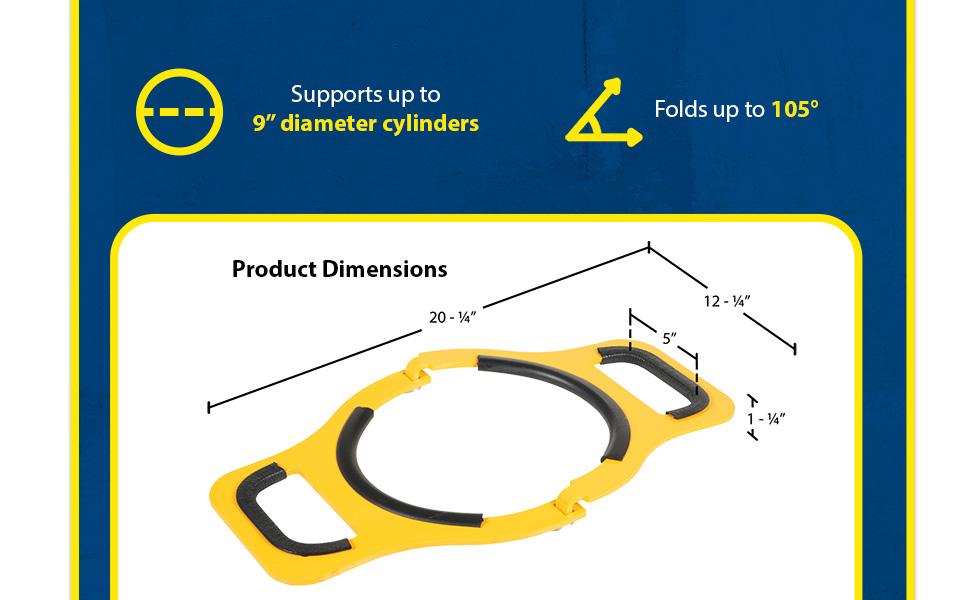 CYL-M-9 CYL-M-9Steel Manual Cylinder Lifter 9 In. Maximum Cylinder Diameter 200 Lb. Capacity YellowUniform Capacity (lb.): 200