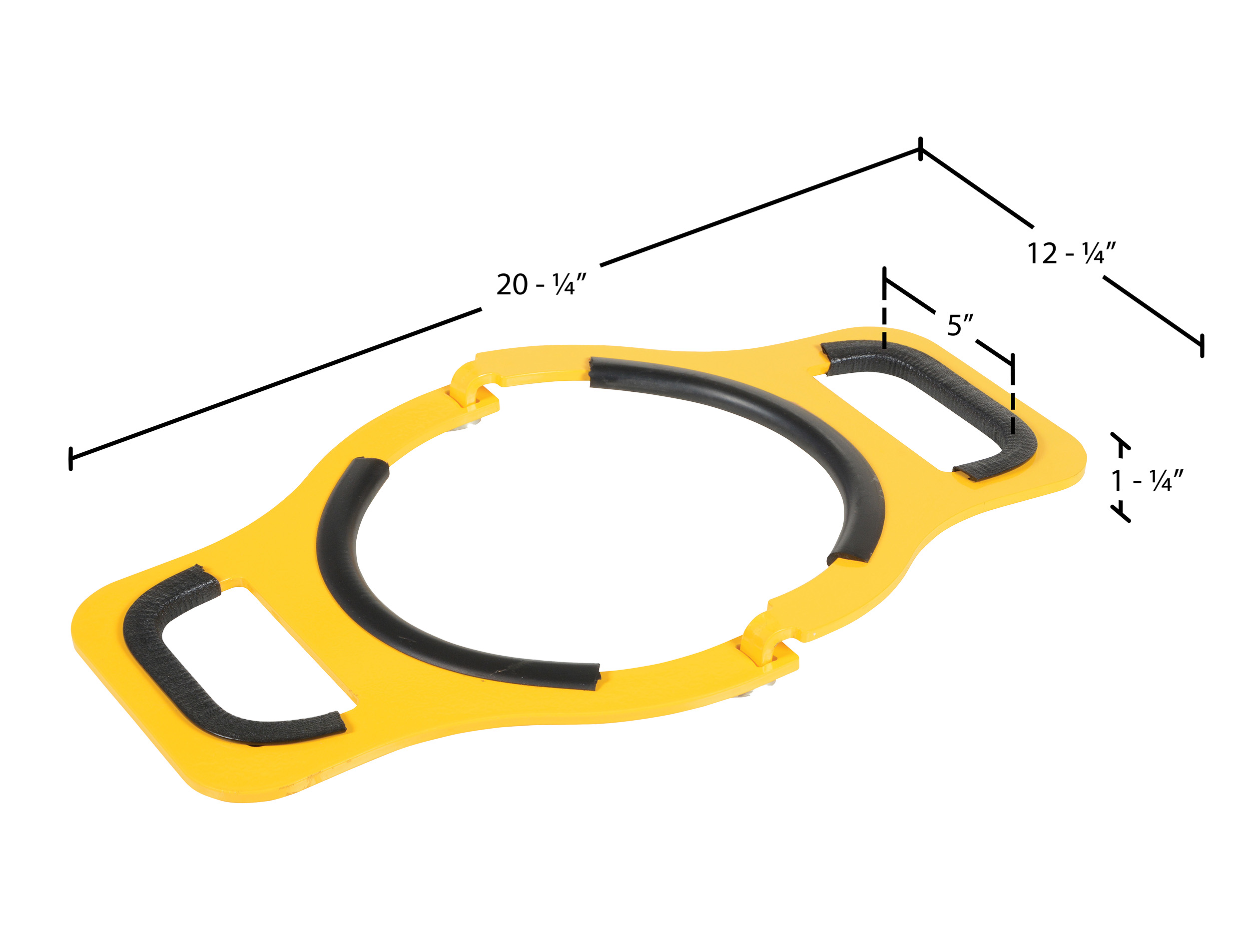 Manual Cylinder Lifters are easy to use and allow for safely lifting cylinders. The pivoting design grabs and squeezes the cylinder when lifted. Lifters feature a rubber-coated center and handle holes. Straight lift with one person or use for a 2 person team lift. Steel construction with a yellow baked-in powder coat finish for toughness. Uniform capacity is 200 pounds.
